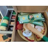 INGREDIENTS, TOPPINGS, AND MORE: Set includes pizza counter, pizza paddle, rolling cutter, delivery box, prep instructions, reusable menu, cheese shaker, felt sauce, (cheese missing), wooden crust, toppings and play money ; Pieces adhere with self-stick tabs