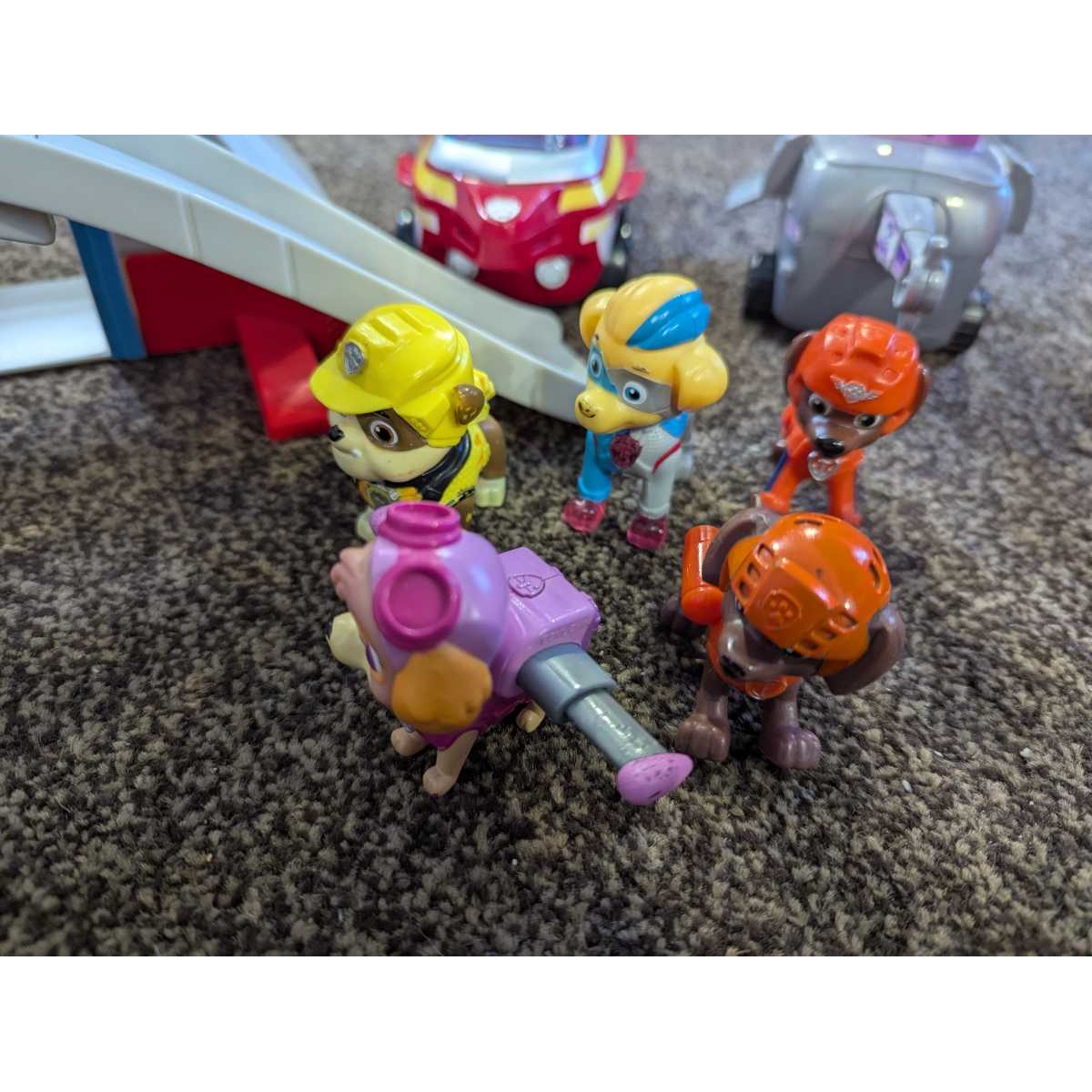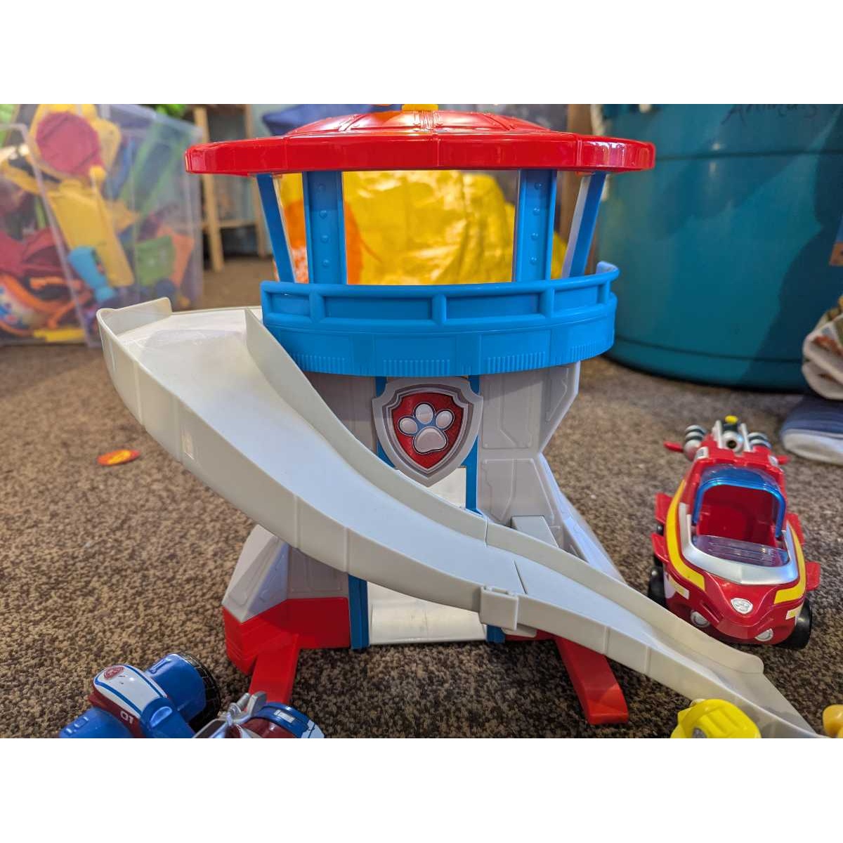 Paw patrol look out tower featuring slide, 3 vehicles and pups